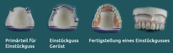 Der Einstückguss gehört zu den Schwerpunkten des Dentallabor Juliane Koch e.K.. Bei der Einstückgusstechnik wird die komplette Primär- oder Sekundärkonstruktion in einer einzigen Nichtedelmetalllegierung hergestellt und in einem Stück gefertigt. Der Einstückguss kommt ohne Lötstellen aus. Die Konstruktionen bestechen durch hohe Stabilität, minimales Gewicht, maximale Funktion und beste Verträglichkeit.